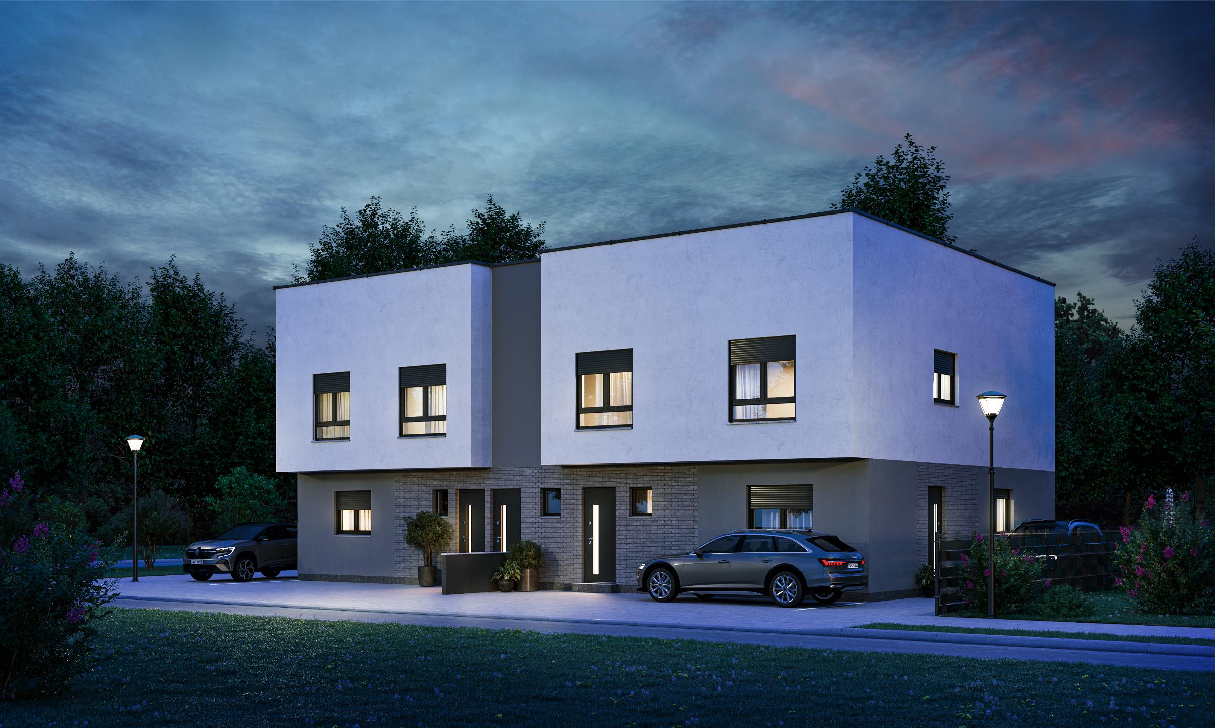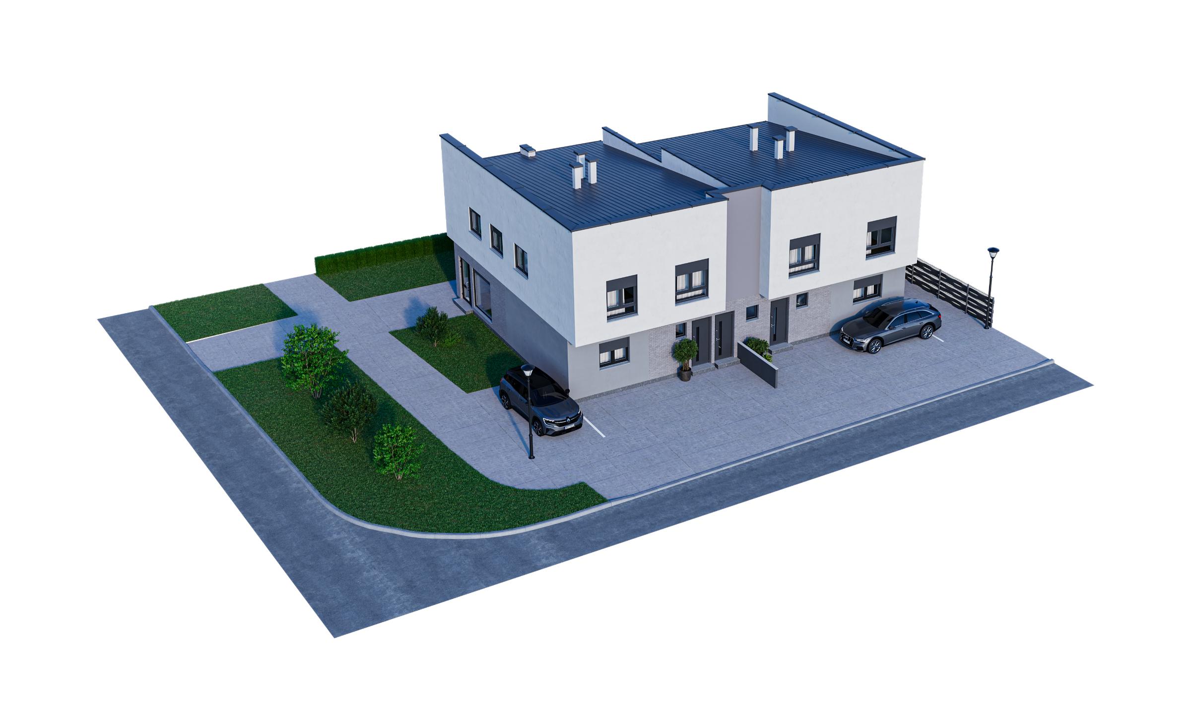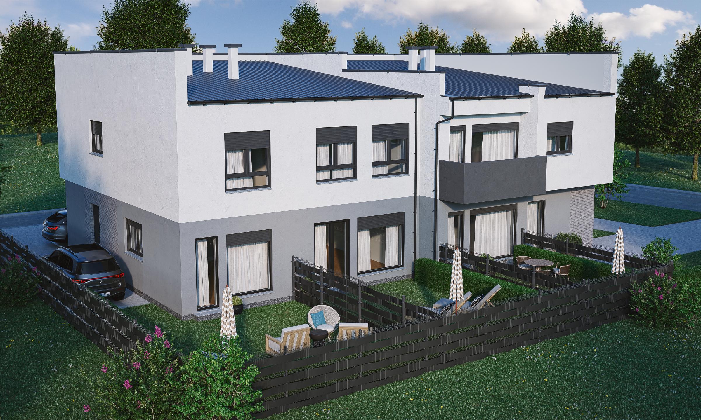 U dvojnom stambenom objektu projektno su planirana po dva četvorosobna stana na dve etaže, sa kvadraturama od oko 85 m2 projektovane neto površine.